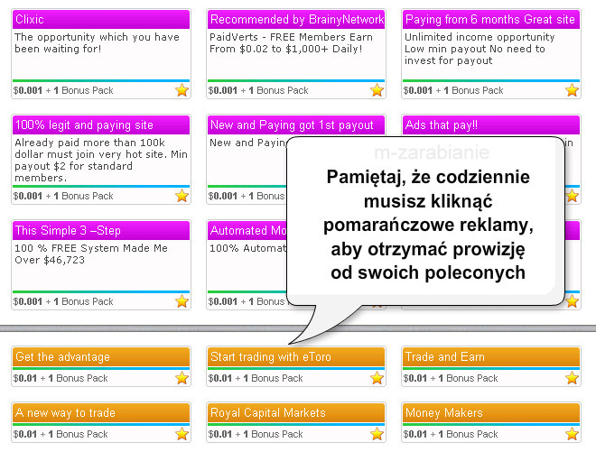9. Jeśli posiadasz poleconych, to pamiętaj, że codziennie musisz odwiedzić 4 pomarańczowe reklamy, aby otrzymać prowizję od poleconych.